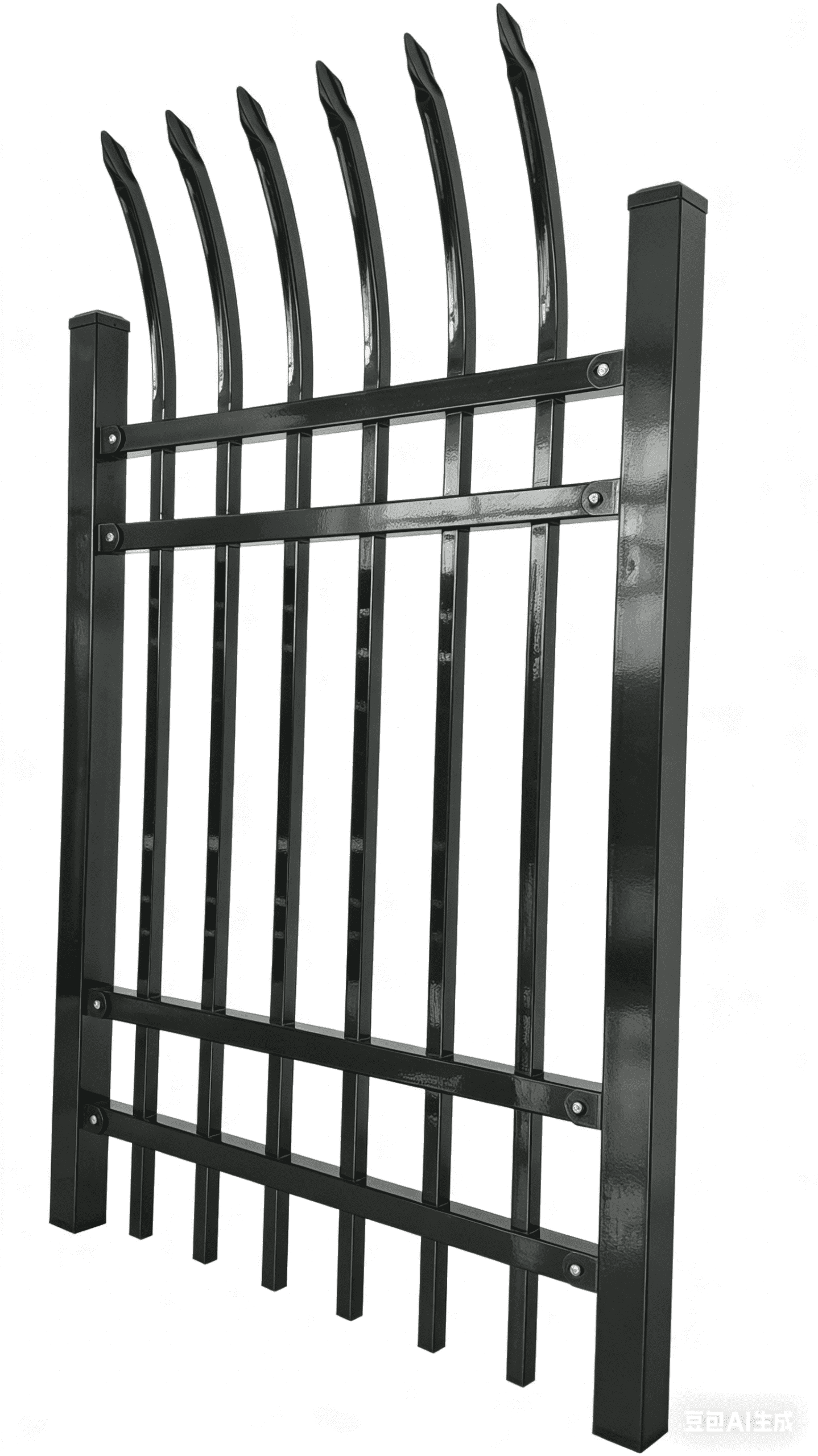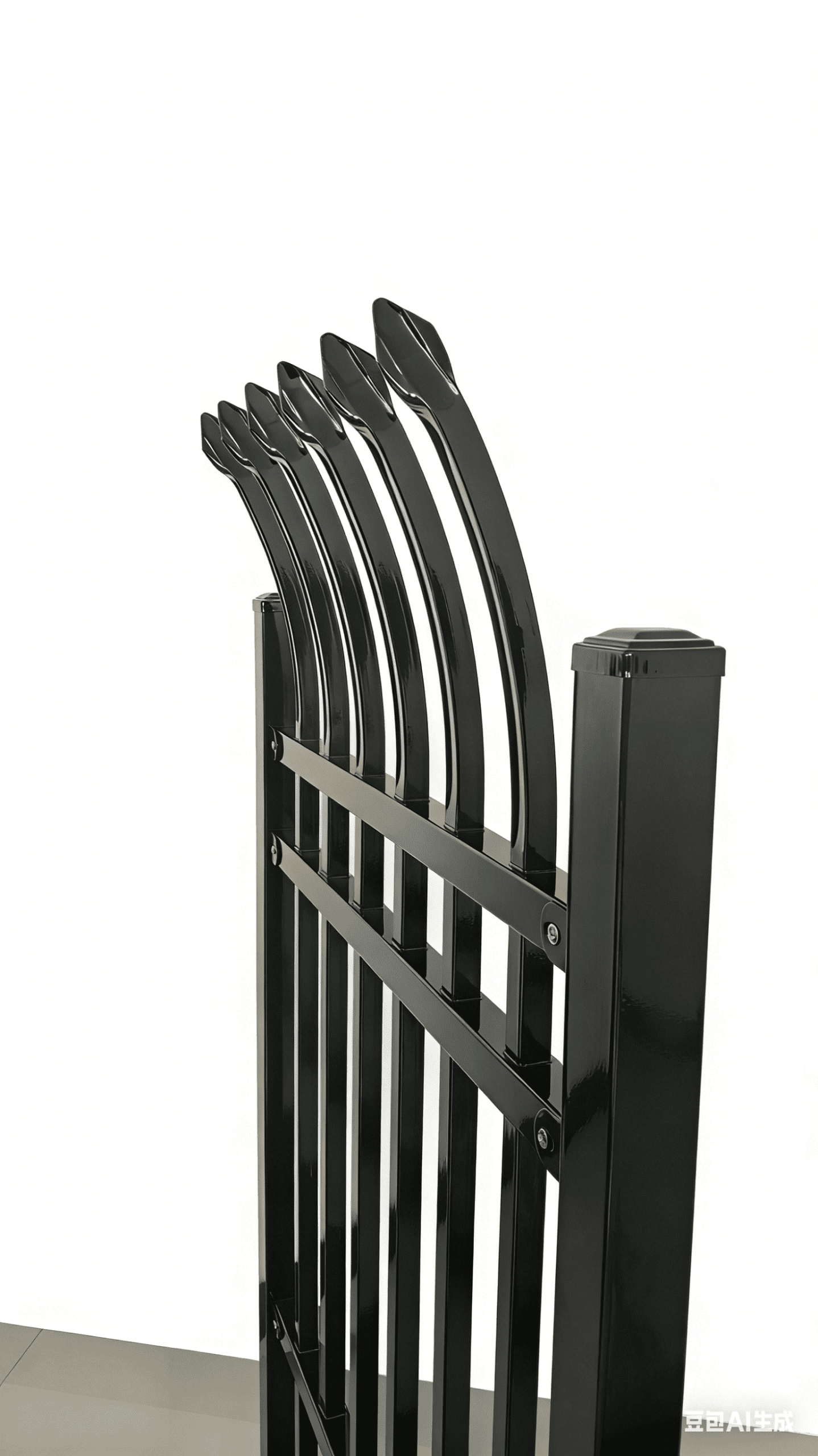 Design Highlights: Featuring a unique curved spear-tip top with smooth, flowing lines, it enhances visual appeal while boosting anti-climb protection. Full customization of colors and finishes (matte, glossy, bronze-like, etc.) is available to match diverse architectural styles.