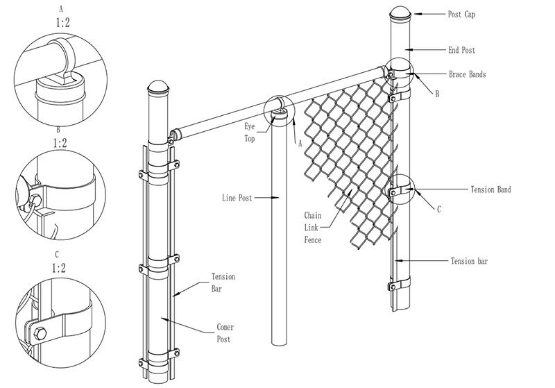 Chain link fence enclosure, Aluminium chain link fence