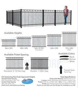 It features an interior and exterior Galvalume coating, a chromate conversion layer, and a thermally bonded polyester powder coating (minimum 2.5 mils thick). Available in heights from 34 to 70 inches and finished in High Gloss Black, White, or custom colors, this fence is a beautiful, ready-to-install solution for your property’s security and curb appeal.